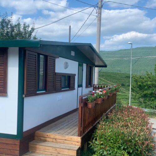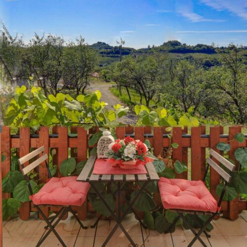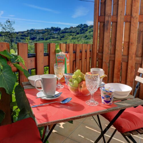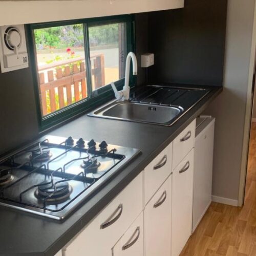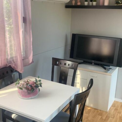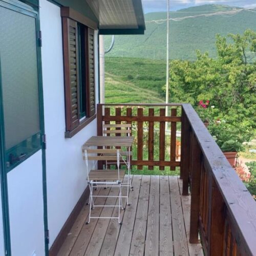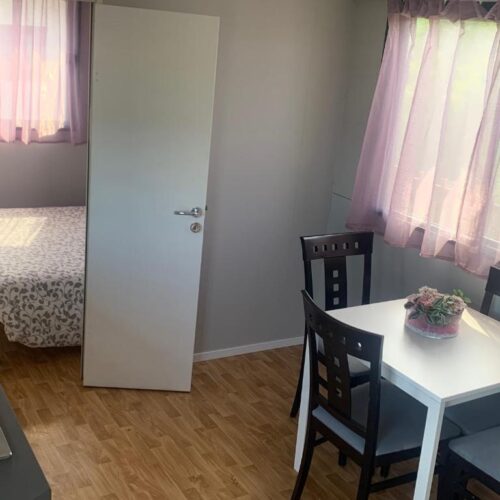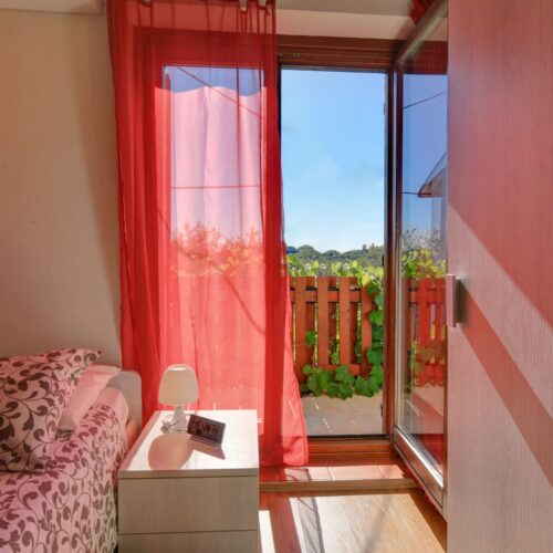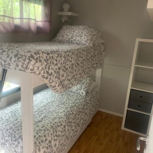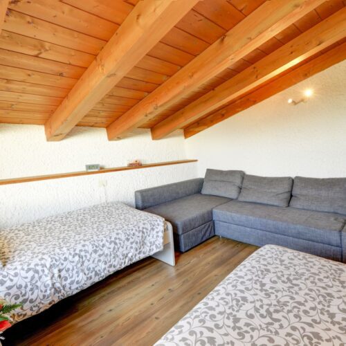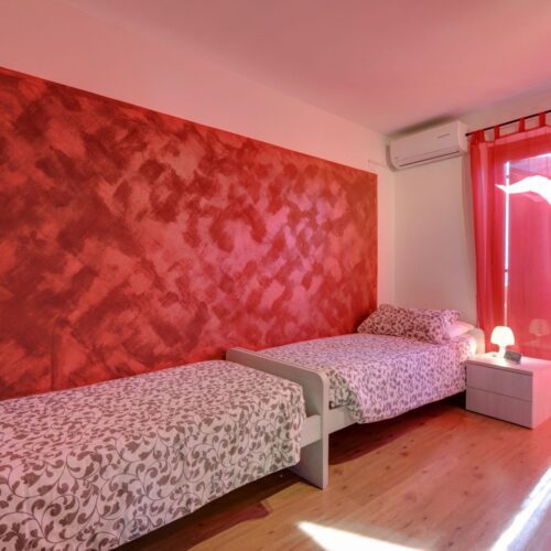 soggiorno/cucina, camera matrimoniale, camera con due letti a castello, bagno e terrazza privata