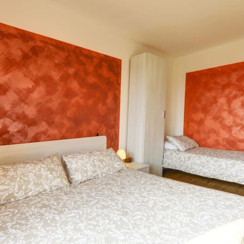 camera tripla: letto matrimoniale, letto singolo, bagno privato e terrazzo privato